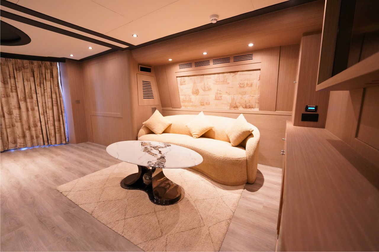 Available from AED 2,199 per hour, KISMAT combines luxury, style, and functionality to deliver a five-star yachting experience.